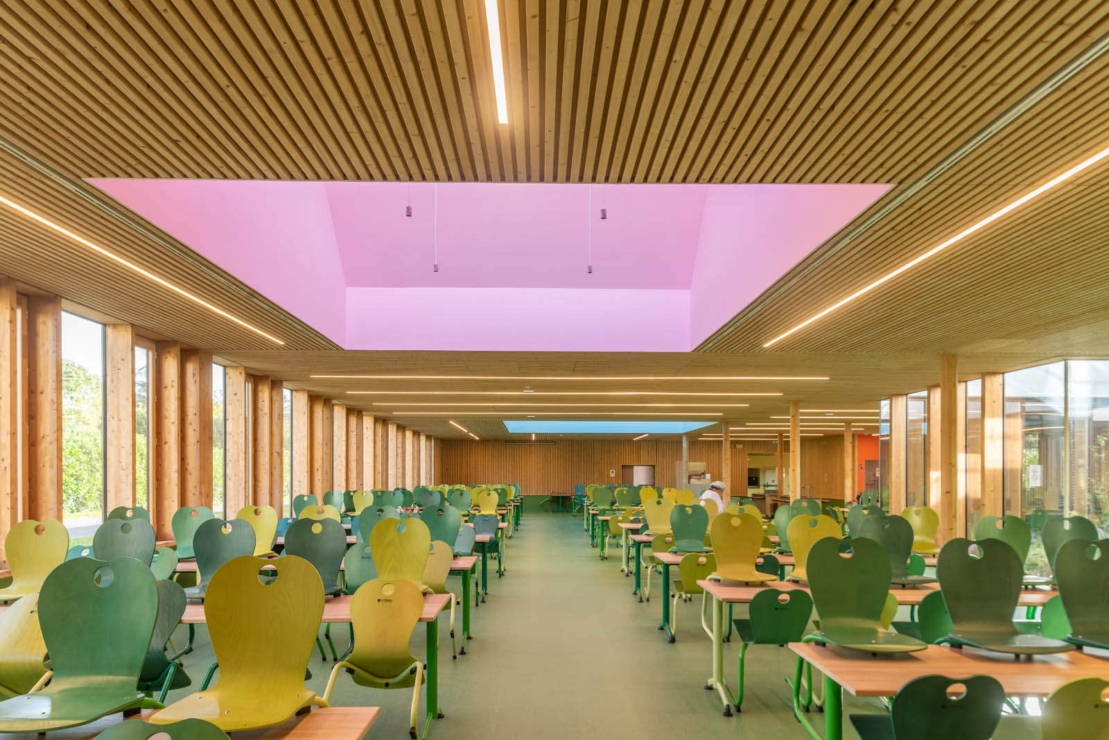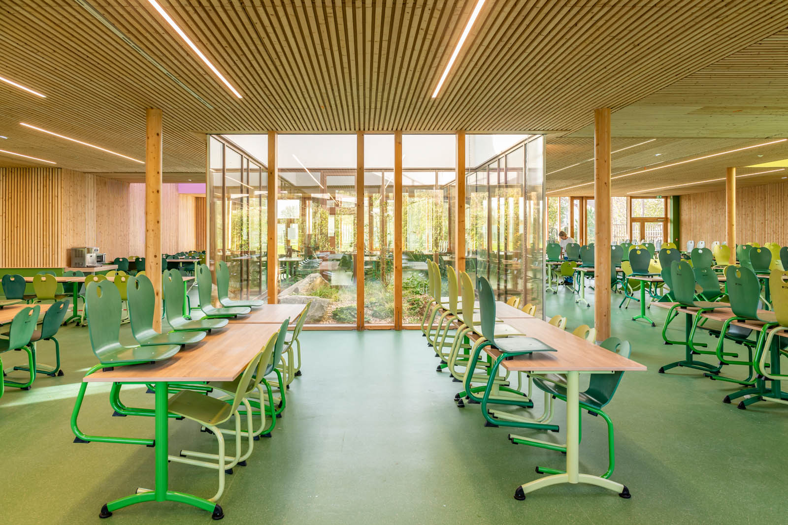 Dans un tissu hétérogène, les interventions architecturales et paysagères viennent clarifier et unifier les constructions autour de trois pôles majeurs. La restructuration du lycée et de son internat offre une peau neuve et une nouvelle vision de l’édifice à travers une architecture de bois innovante et chaleureuse. La création d’un bâtiment neuf de demi-pension permet aussi en lien avec le lycée agricole voisin de concentrer en lieu de convivialité et de partage élèves et enseignants des deux pôles.